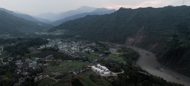 Xinchang village’s kindergarten is one of more than ten kindergartens that Open Foundation has donated to the disaster area of 2013 Lushan earthquake. Surrounded by mountains, the site is a relatively small platform in the northwest of the village. It faces a mountain gap to the west, so that people can still sense the faraway from here. The surrounding settlements, while providing shelters to the inhabitants, confronts subtly the nature that dominates.