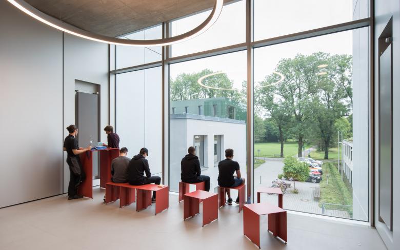 Der Campus der Handwerkskammer für Schwaben liegt in einem von vielfältigen Nutzungen geprägten Gebiet am Rande von Augsburg. Wohnen, Freizeiteinrichtungen und Naherholungsflächen liegen in unmittelbarer Nachbarschaft. So grenzt die Spickelwiese - ein attraktiver Grünraum - im Osten an das Grundstück der HWK, im Westen befinden sich der Augsburger Zoo und der botanische Garten. Auf dem Gelände hatten Gebäude aus unterschiedlichen Jahrzehnten eine heterogene bauliche Struktur entstehen lassen. Seit 15 Jahren entwickelt die HWK den Standort neu. Der Neubau des Berufsbildungs- und Technologiezentrums (BTZ), realisiert in zwei Bauabschnitten, ist der größte und wichtigste Entwicklungsschritt für das Areal.
