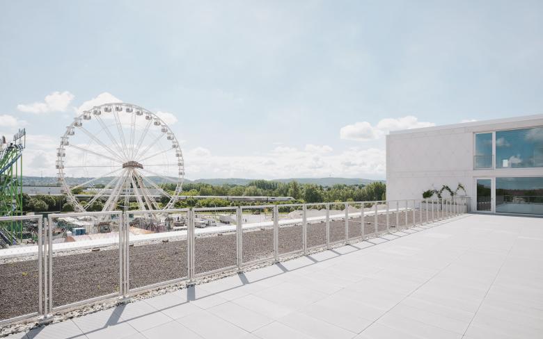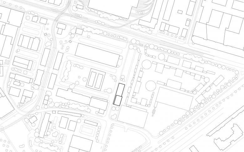 Das Festigungs- und Expansionszentrum (FUX) ist im Osten des Schlachthofareals positioniert und grenzt unmittelbar an den Karlsruher Messplatz, der ganzjährig für verschiedene Festivals und Veranstaltungen zur Verfügung steht. Der Neubau orientiert sich städtebaulich an den engen Vorgaben des Bebauungsplans und setzt sich konstruktiv mit den Hinweisen aus dem „Gestaltungshandbuch Alter Schlachthof“ auseinander.