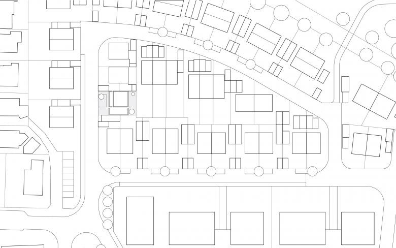 Zwei wesentliche Parameter haben den Entwurfsprozess bestimmt: Die restriktiven Vorgaben des Bebauungsplans und das zur Verfügung stehende Budget für die Baukosten in Höhe von 300.000 EUR netto. Das 197 m² große Grundstück besitzt eine Kantenlänge von 11.15 mal 17.65 m. Aufgrund der beengten Verhältnisse sieht der Bebauungsplan vor, dass das Gebäude an die Nordgrenze gebaut werden darf. Im Westen muss die festgesetzte Baulinie aufgenommen werden, wobei das dritte Geschoss um zwei Meter zurückspringen muss. Die Kubatur ist konsequent aus diesem definierten Baufenster entwickelt worden.