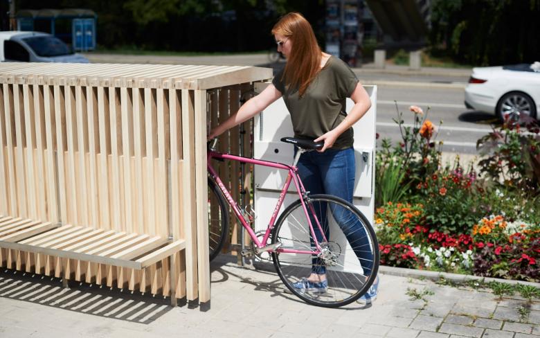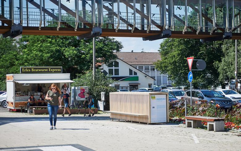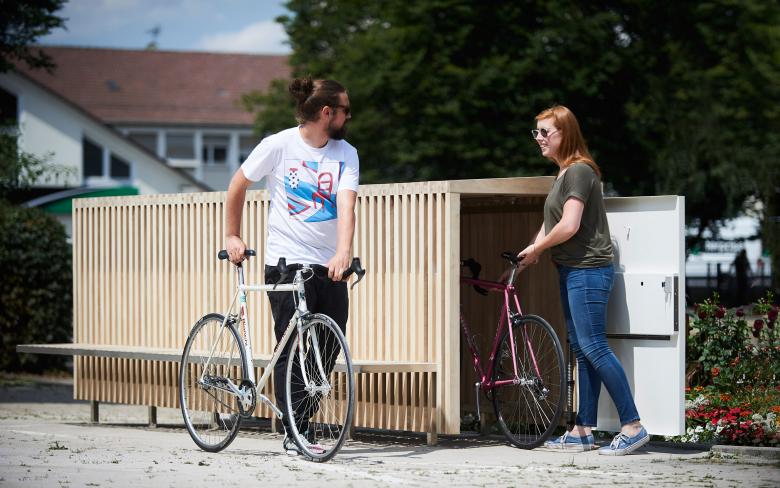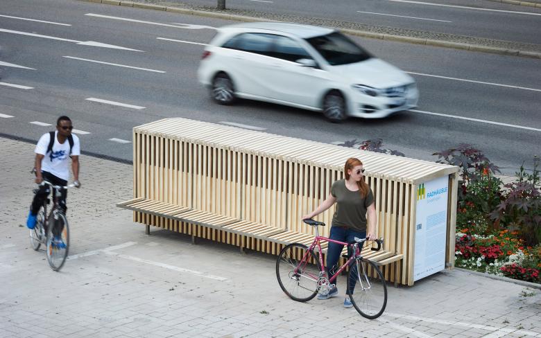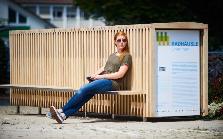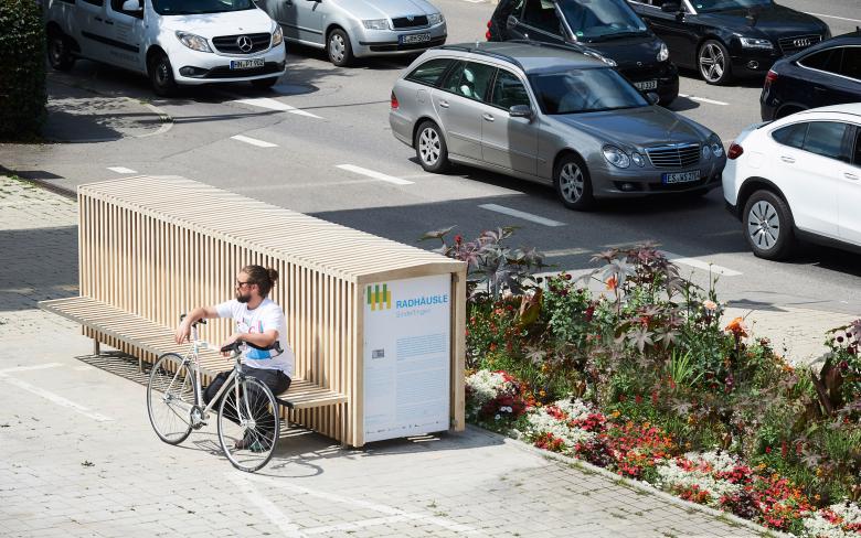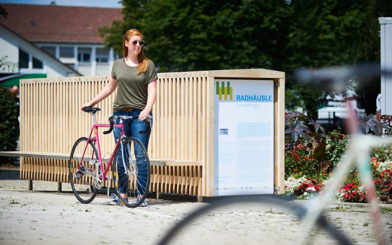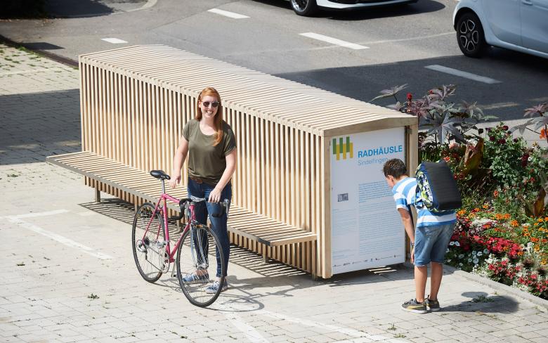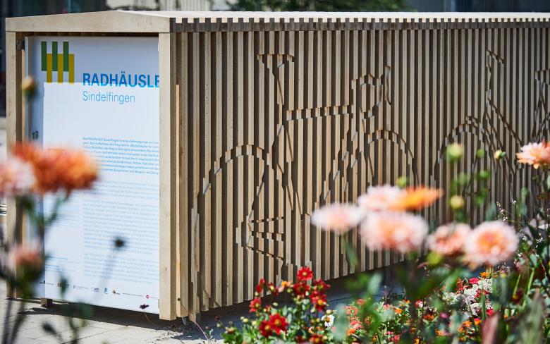 "Gefördert durch die Region Stuttgart ist das RADHÄUSLE Sindelfingen einerseits eine Fahrradbox, die das wetter- und diebstahlsichere Unterstellen von Fahrrändern ermöglicht, andererseits ein attraktives Stadtmöbel, das Funktionen für alle Stadtnutzer anbietet und durch sein Erscheinungsbild den öffentlichen Raum bereichert." (Quelle: Stadt Sindelfingen)