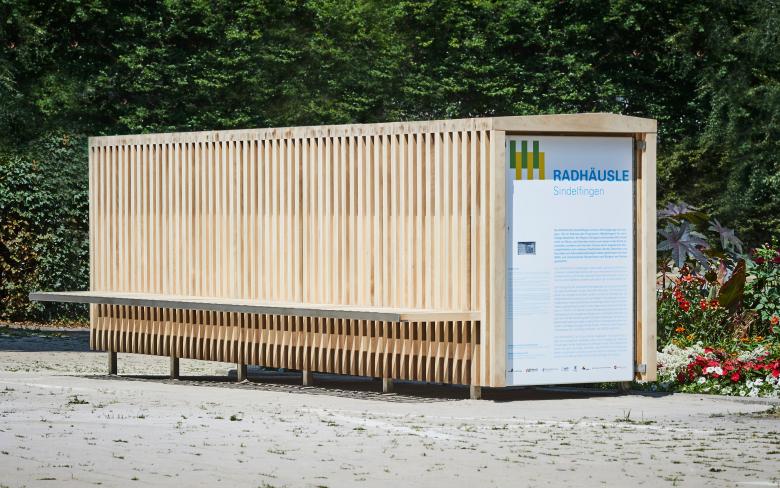 Das Fahrrad ist ein umwelt- und klimafreundliches Fortbewegungsmittel in der Stadt. Es funktioniert nach einem einfachen technischen Prinzip und stellt ein ästhetisches Objekt dar. Fahrradfahren macht Spaß und bringt dem Nutzer einen Mehrwert (körperliche Ertüchtigung). Das RADHÄUSLE soll die gleichen Eigenschaften besitzen, um bei den Radfahrern Akzeptanz zu finden und um im städtischen Raum zu bestehen. Der modulare Aufbau des Sindelfinger Holzradhäusle bietet verschiedene Ausführungsmöglichkeiten für ein oder mehrerer Fahrräder. Es kann sowohl auf der Stirn- als auch auf der Längsseite erweitert werden, um flexibel auf die Besonderheiten des Aufstellungsortes zu reagieren. Zusätzliche Funktionen (Bank, Stehtisch, weitere Fahrradbügel) machen das RADHÄUSLE zu einem Stadtmöbel.