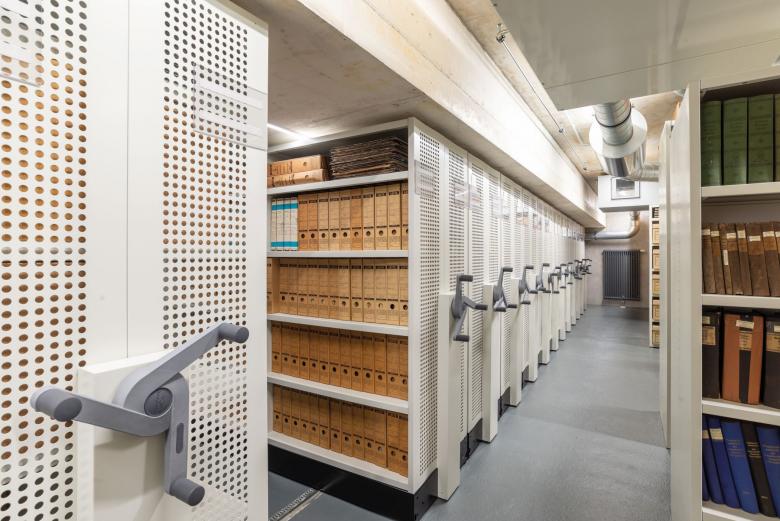 Ein multifunktionaler, heller Raum im Dachgeschoss – nutzbar als Lesesaal, Seminarraum, Vortragsraum oder für archivpädagogische Veranstaltungen – immer mit einem gerahmten Blick über den Stadtweiher. Ebenso vielseitig bespielbar ist das große offene Treppenhaus, das sich über alle Geschosse zieht. Hier können Ausstellungen gezeigt werden oder Empfänge stattfinden.