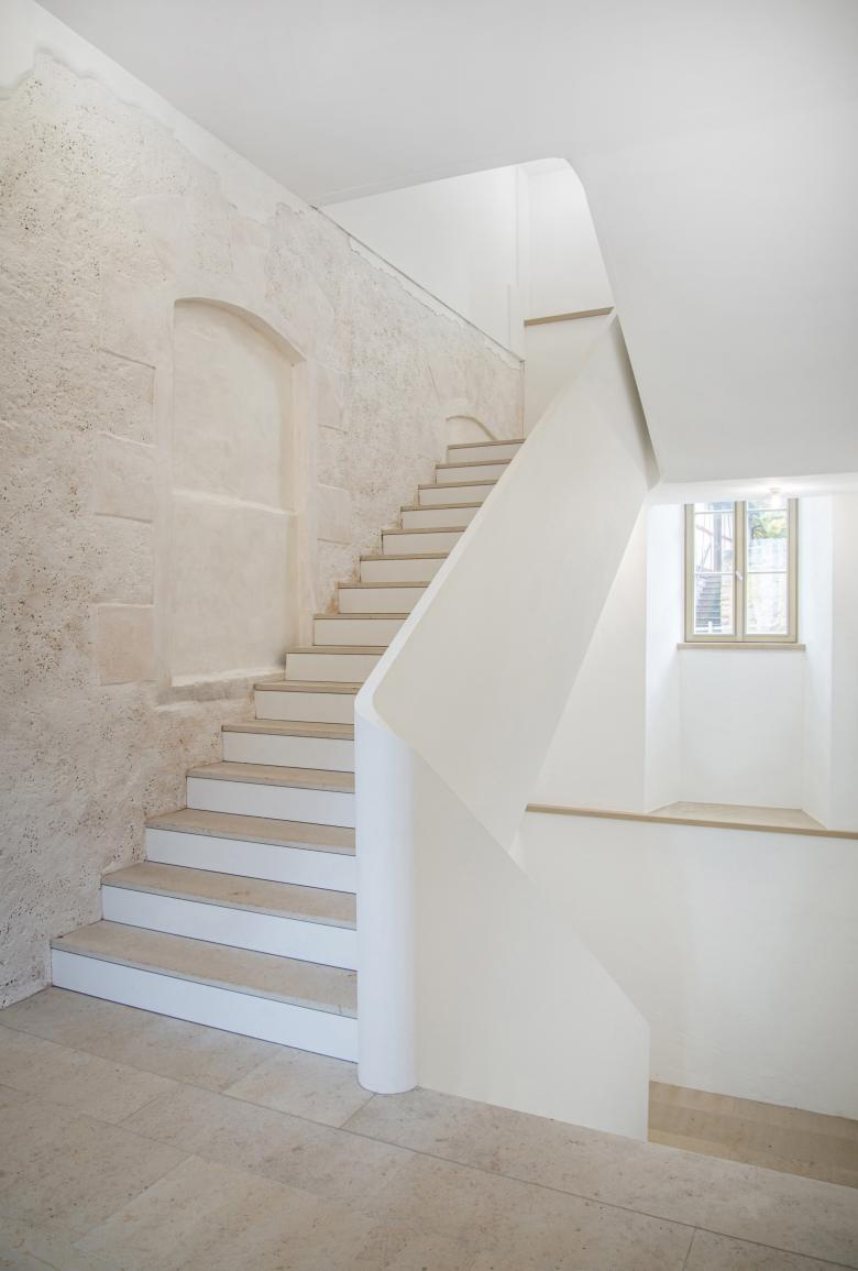 Klösterliche Schlichtheit und natürliche, nachhaltige Materialien, die vor dem Morgen bestehen dominieren unser Konzept: Naturstein, Eiche und Kalkputz, helle Farben. Historische Türen und Putze wurden aufgearbeitet und restauriert.