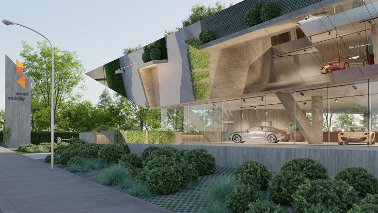 This multifunctional complex not only offers sales and maintenance services for electric vehicles, but also features an innovative underground parking garage. While customers wait for maintenance or battery charging, they can use the building’s upper floor, which is equipped with offices, workspaces, and meeting rooms, making waiting time productive.