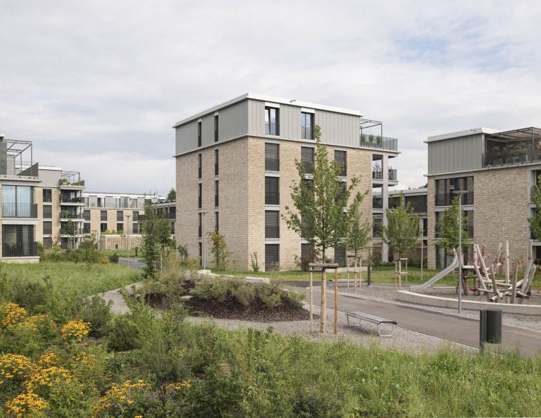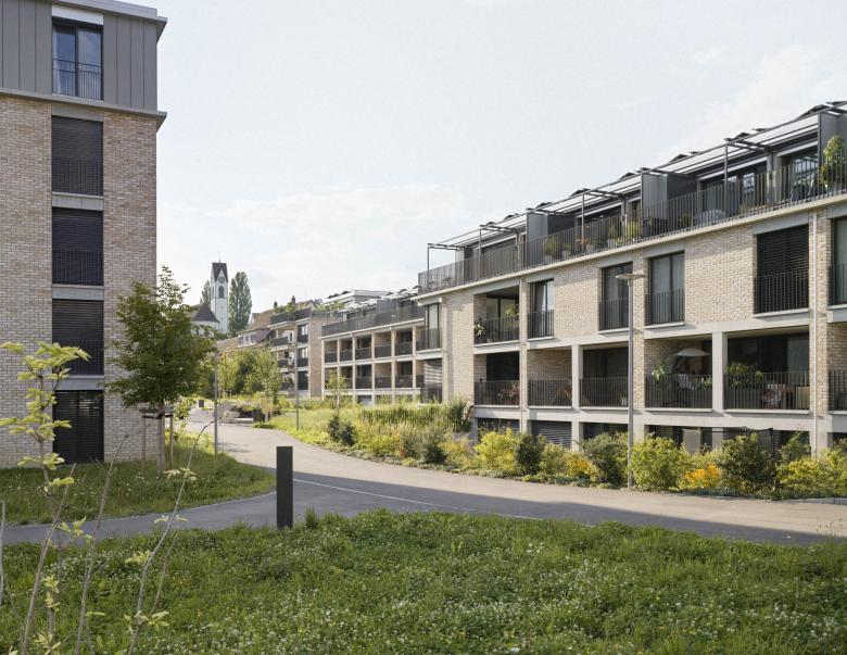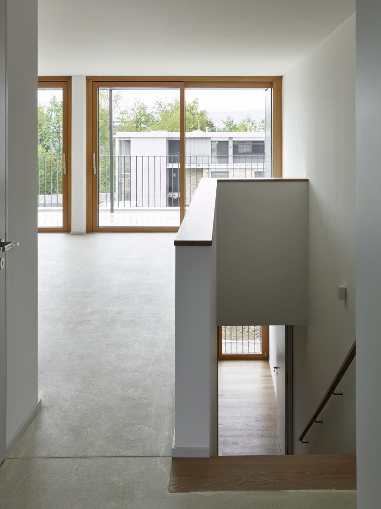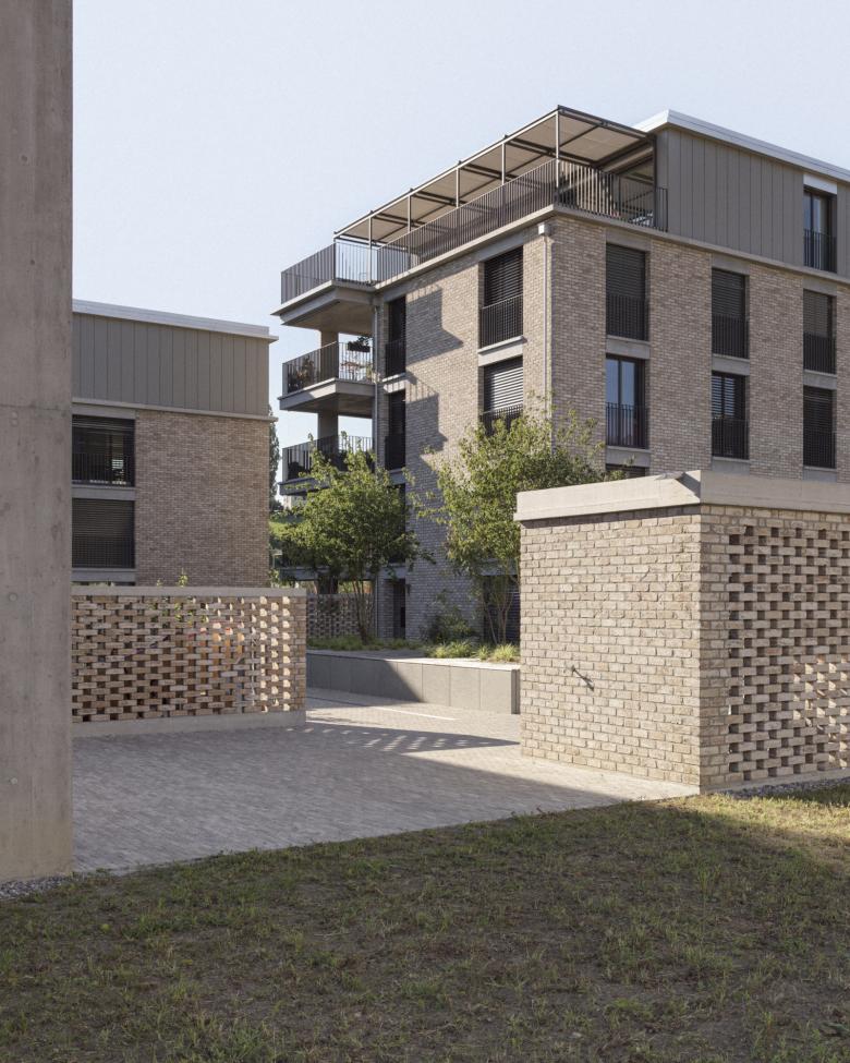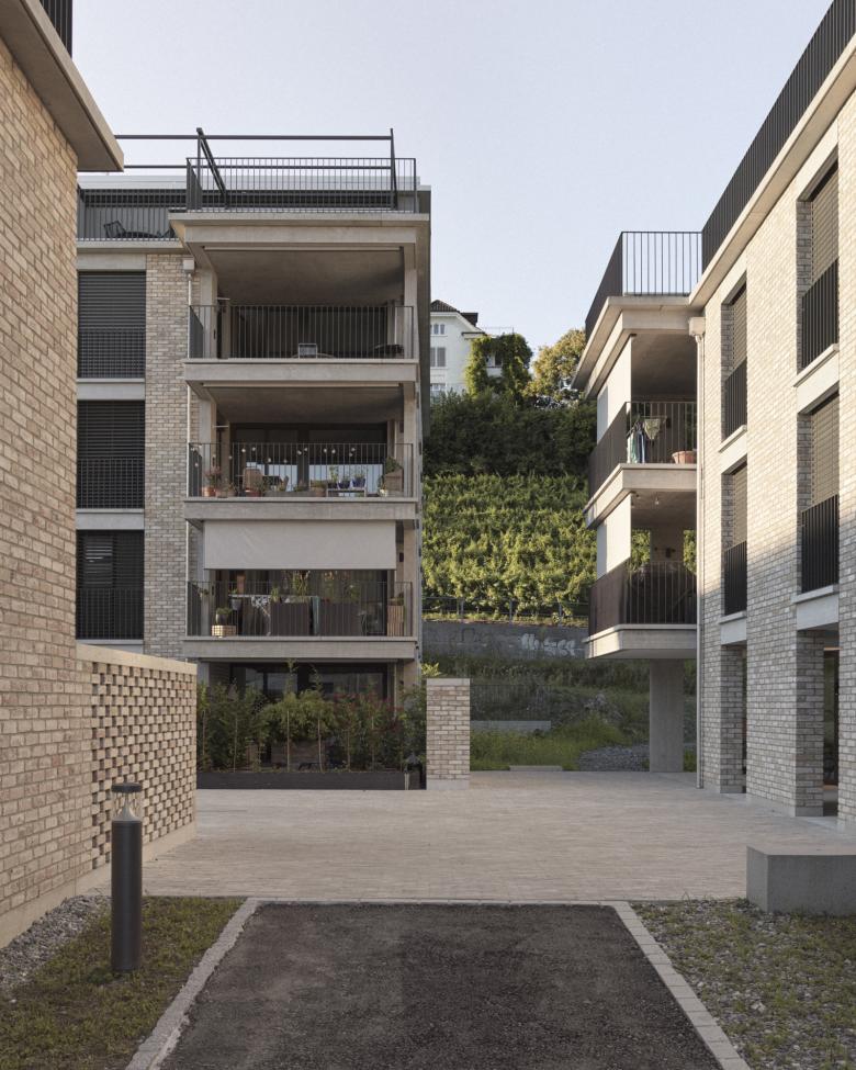Die Platzierung und Setzung der Gebäudekörper nimmt Rücksicht auf die spezifische Lage und Topgrafie des Areals und nutzt diese optimal für die Anordnung von unterschiedlichsten Geschoss- oder Maisonnette-Wohnungen aus. Bei der Raumbildung und Grundrisskonzeption wurde Wert auf die Entstehung von spannenden Räumen gelegt, auf Licht durchflutete, flexible Innenräume oder grosszügige Aussenräume, sei es als Loggia, Balkon, Dachterrasse oder privat zugänglicher Gartenhof.
