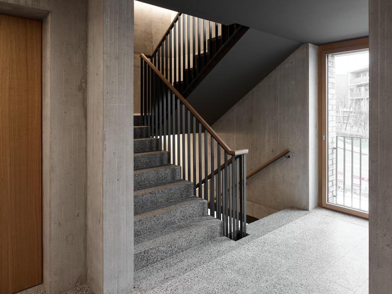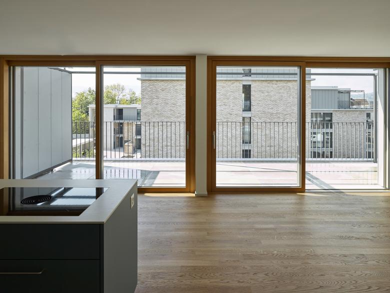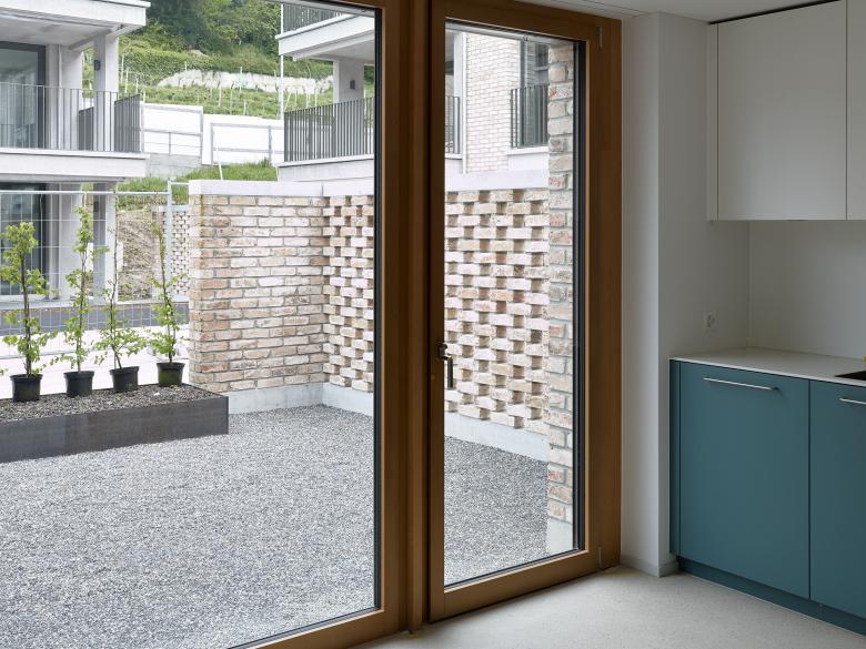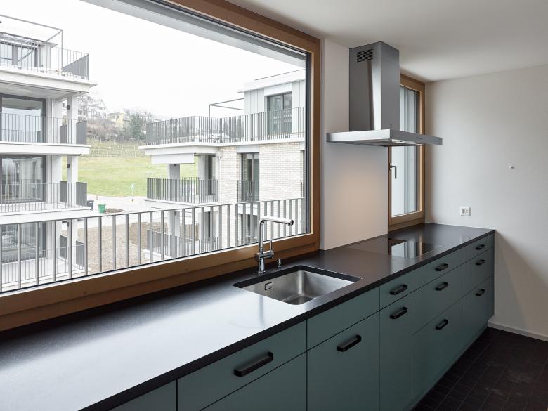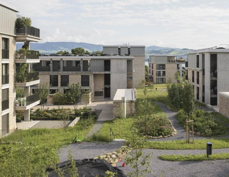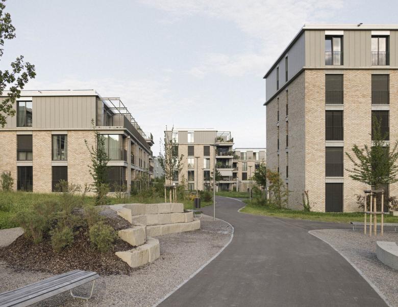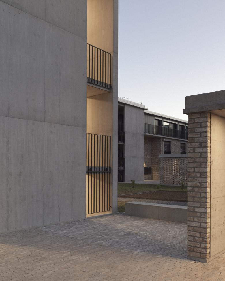 Die Platzierung und Setzung der Gebäudekörper nimmt Rücksicht auf die spezifische Lage und Topgrafie des Areals und nutzt diese optimal für die Anordnung von unterschiedlichsten Geschoss- oder Maisonnette-Wohnungen aus. Bei der Raumbildung und Grundrisskonzeption wurde Wert auf die Entstehung von spannenden Räumen gelegt, auf Licht durchflutete, flexible Innenräume oder grosszügige Aussenräume, sei es als Loggia, Balkon, Dachterrasse oder privat zugänglicher Gartenhof.