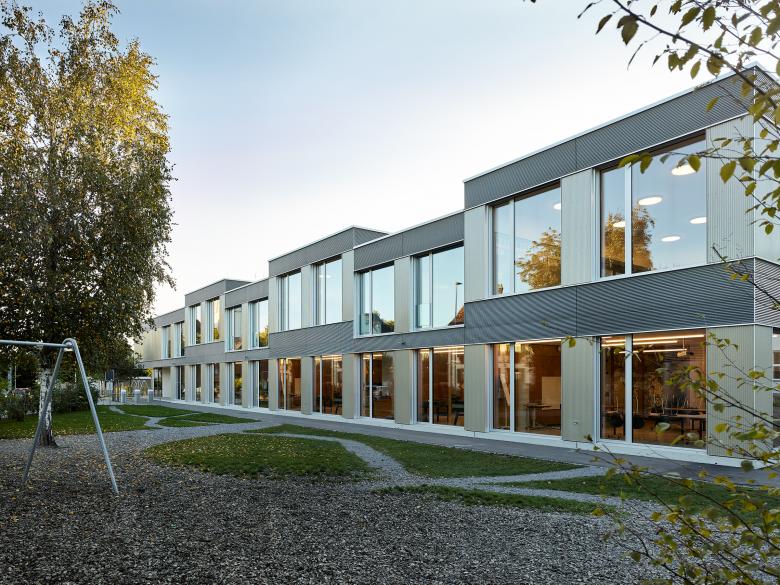 Massstäblichkeit, die die Traufhöhe vom Schulhaus Feld respektiert.