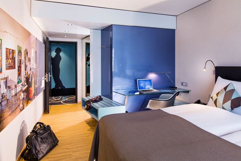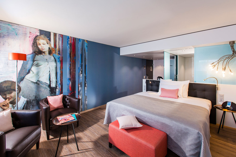 7 Künstlerzimmer sind sehr unterschiedlich und ganz individuell konzipiert und gestaltet. Und vier verschiedene Farbkonzepte mit keck darauf abgestimmten Materialien in den Standardzimmern und auf den Korridoren ergeben eine frische, bunte und fröhliche Ausstrahlung, ein erfrischender Gegensatz zum Business-Alltag.