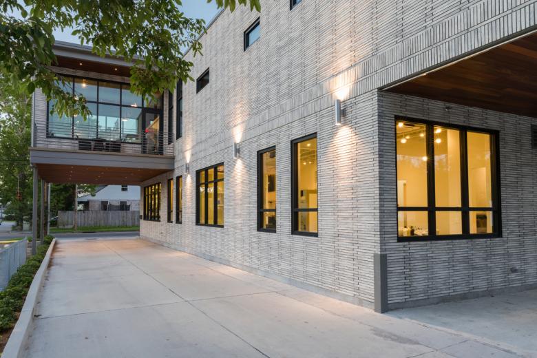 Requirements of the CPZ-Ped zoning included 70% of the front elevation had to be glazed, and the front set back was a maximum of 10’-0” from the property line off of Metairie Road.