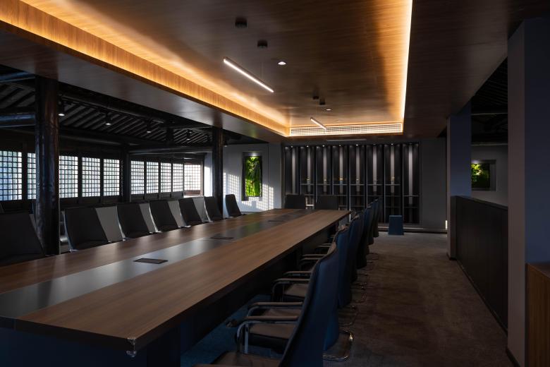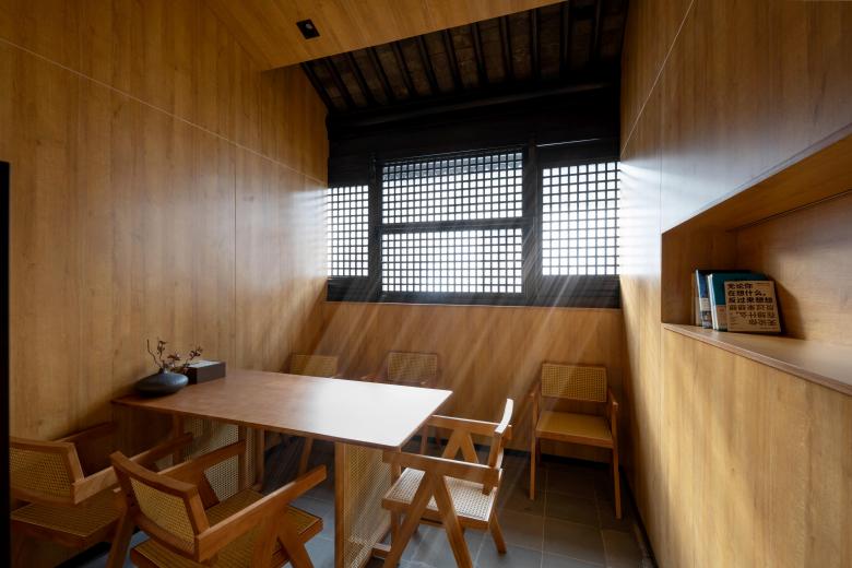 与之前的这座建筑的功能相比,把它定义为一间音乐美学中心则是赋予了它更为鲜活灵动的生命。在改造之后的建筑一层,前两进院子被巧妙地布置成展览区。沿着石阶再往后走,这里设置了办公用的区域和会议室,紧接着则是咖啡厅。这座古老的建筑经过建筑师的新业态改造之后,变得更加人来人往、络绎不绝、生机勃勃。