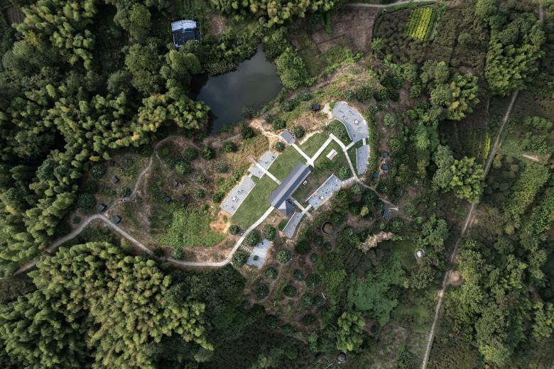 与周围环境的互动在任何建筑中都具有极其重要的意义。环境本身有其独特的氛围,不同的周边环境会赋予建筑以不同的特质。忽视周边环境而建造的建筑只能算作满足使用需求的产品,而无法展现出多样性和生动性。在丰富多彩的环境中从事建筑设计令人欣喜,周边的街道、树木、村落、竹林、山脉等等,都应该被纳入建筑设计的考虑之中,以创造出充满生气和多样表情的建筑。正如有句话说:“桥上的人在看风景,看风景的人在楼上看你”,事物之间相互依存、相互关联,这才使生活充满了诗意。站在山下远眺茶室,茶室本身成为了一道风景,同时在茶室内,人们可以尽情欣赏四明山和四明湖的美景。人与人之间保持着一定的距离,但通过观察与被观察,空间的表达中融入了这种微妙的联系,这也增添了趣味和情感层次。