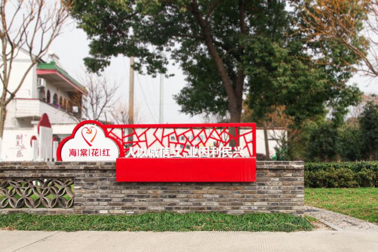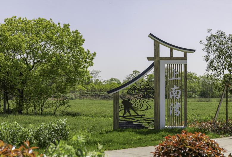 震泽村庄一般与乡镇道路相连,开车路过多是平平无奇,很多村庄甚至无法感知入口的存在。一个尺度适当的村庄标识能够营造起充分场地进入感,同时体现村庄特色。