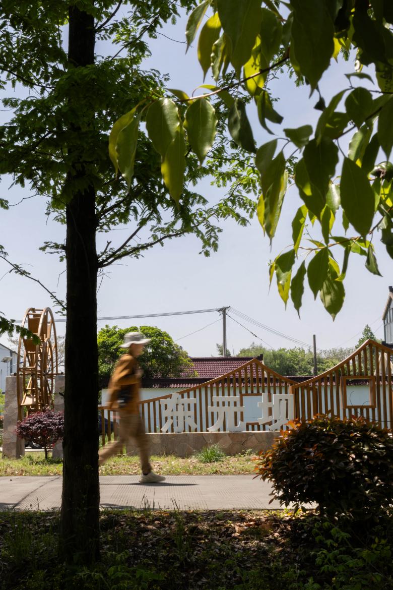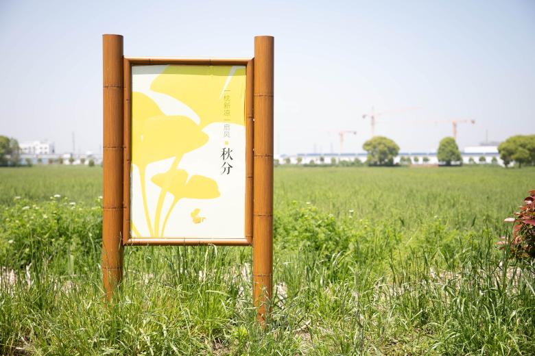 田地是农业生产的主要阵地,生产性景观本就是乡村最美的风景。我们通过田边小品的形式介入,为田园风光增添一抹亮色,同时兼顾思想、文化宣传教育的功能。