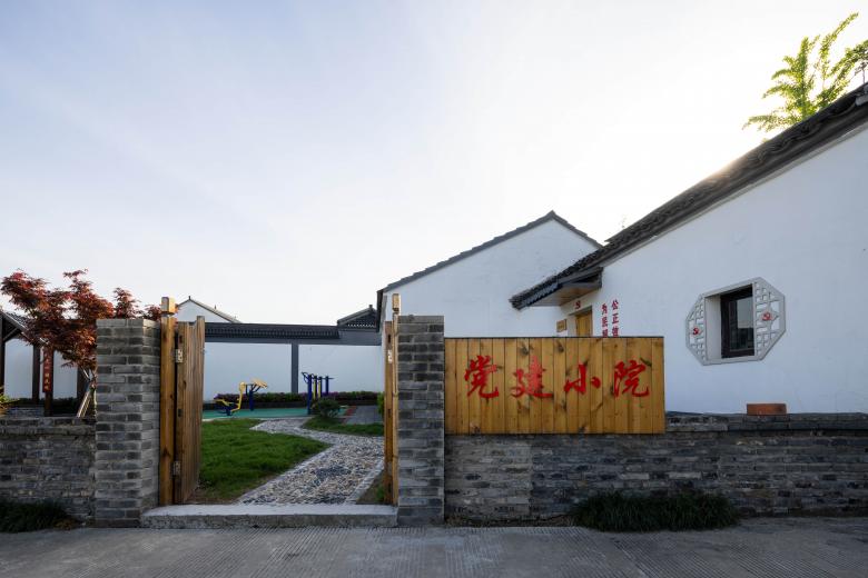 在震泽地区,村民的庭院多是有院墙围合的私密空间。对于宅前屋后的小块空地,我们加以适当的围合、布置,形成具有休憩、交流聚会等多种功能的公共空间。