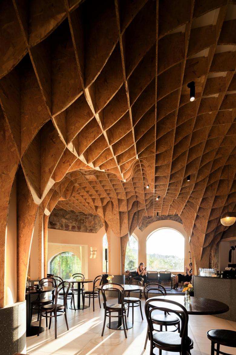 拆除了原始的中式八角亭,将其改造成了三个螺旋上升的灯塔,象征着历史与现代的交汇与升华。螺旋形的结构不仅在视觉上具有强烈的冲击力,还能引导游客逐步上升,体验空间的变化与延展。同时优化内部空间布局,重新规划内部流线,使得咖啡店不仅是一个休闲场所,更成为了一个文化交流和体验的空间。