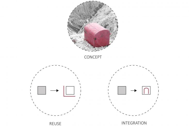 Through a few targeted interventions, the external appearance of the place (extension of an old existing building) appears completely new compared to the surrounding context, with which it is ready to dialogue and interact. Starting from the terrace above the bar / restaurant, it is accessible to the public aiming to establish a new point of reference and revitalization for the village.