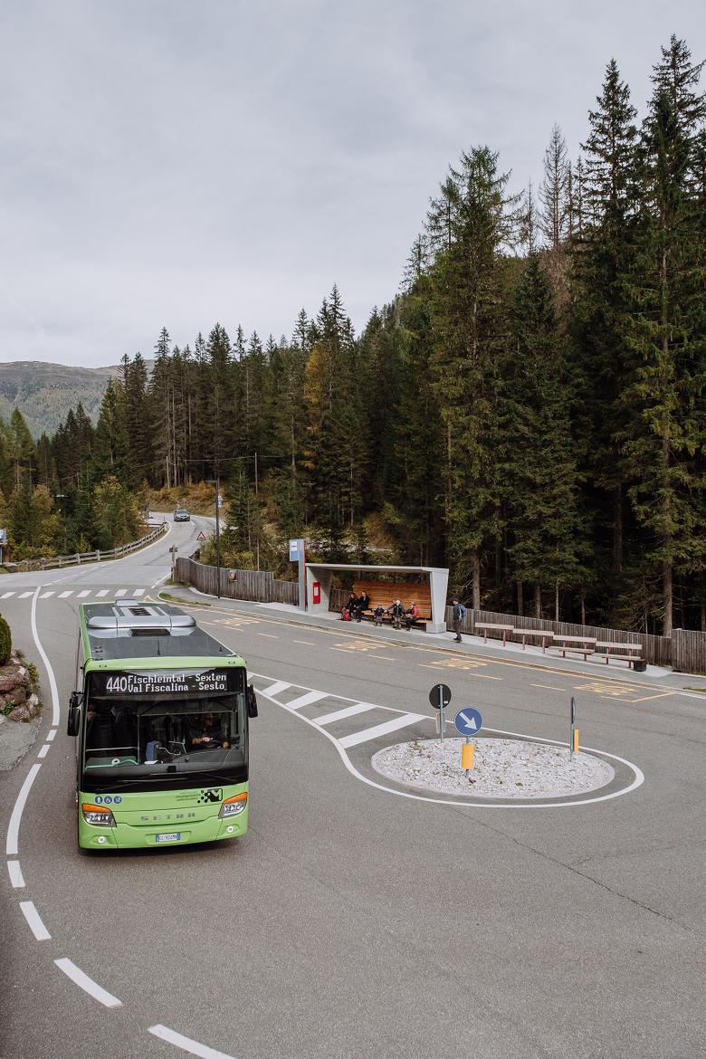 Sexten is a popular tourist destination in the Dolomites and, as a "tourism hotspot," suffers from heavy traffic. Initiatives at various levels aim to make the use of public transportation more attractive. This also includes the design, or so-called corporate design, of the local bus stops. At the initiative of the local tourism association, modular bus stops were to be conceived - starting from individual, combinable elements. The individual elements include a bus stop sign, a shelter with a display case and seating of various sizes, a standing rest, and an uncovered bench. Depending on usage intensity and available space, different combinations of bus stops can be created. Thanks to the modular design, the structure can be adapted to the specific conditions of each location, while maintaining a consistent aesthetic throughout the town.