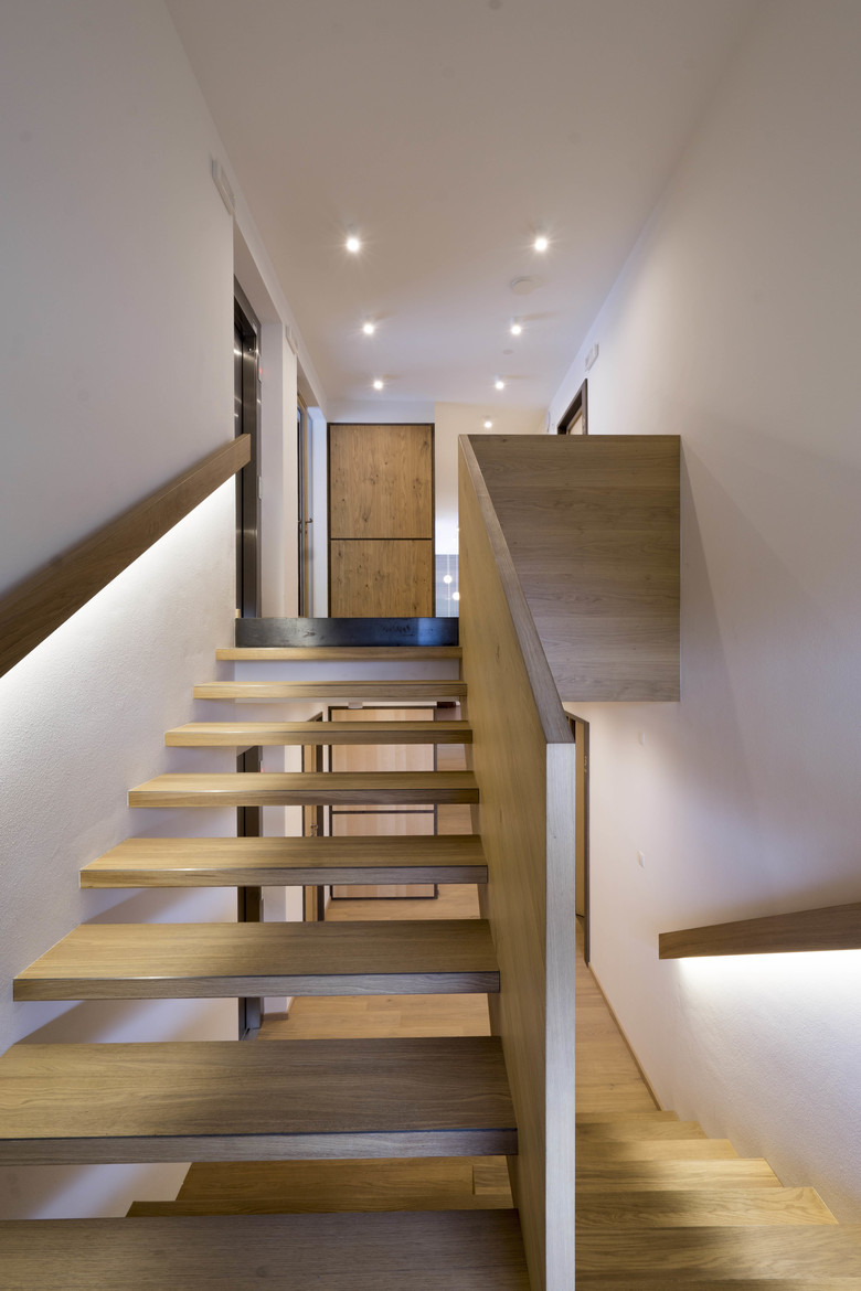 Particular attention was paid to improving the energy performance of the building, such as doors and windows with triple glass, controlled ventilation system, heating system connected to a wooden pellets district heating plant and heat-sound insulation with wooden fiber.