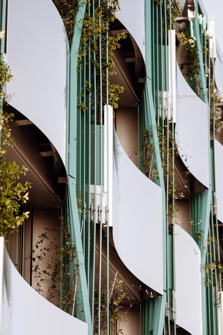 The street-facing facades of Hotel Savoy are being transformed into a rhythmic, green structure of curved steel. This new outer layer creates private outdoor spaces while filtering light, noise, and views. In doing so, the hotel becomes more deeply integrated into the urban context, and the architecture emerges as a breathing threshold between city, landscape, and hospitality.