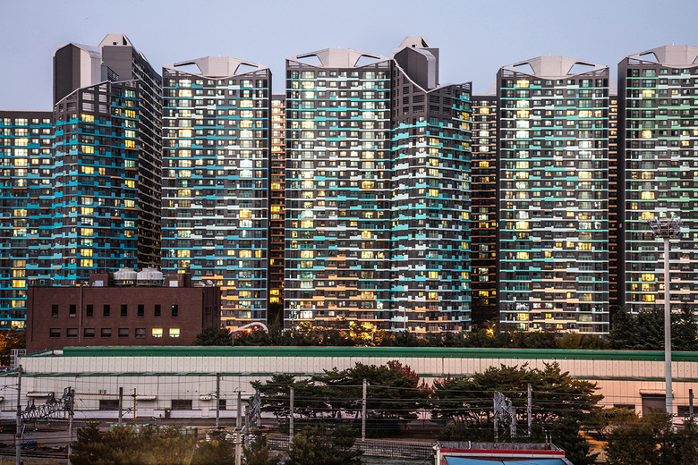 Following its implementation as a result of the rapid urbanisation of the booming middle class in South Korea, apartment living continues to be the most popular type of housing in the country. In cities across South Korea this type of housing can be found stacked in identical, densely packed, utilitarian blocks.