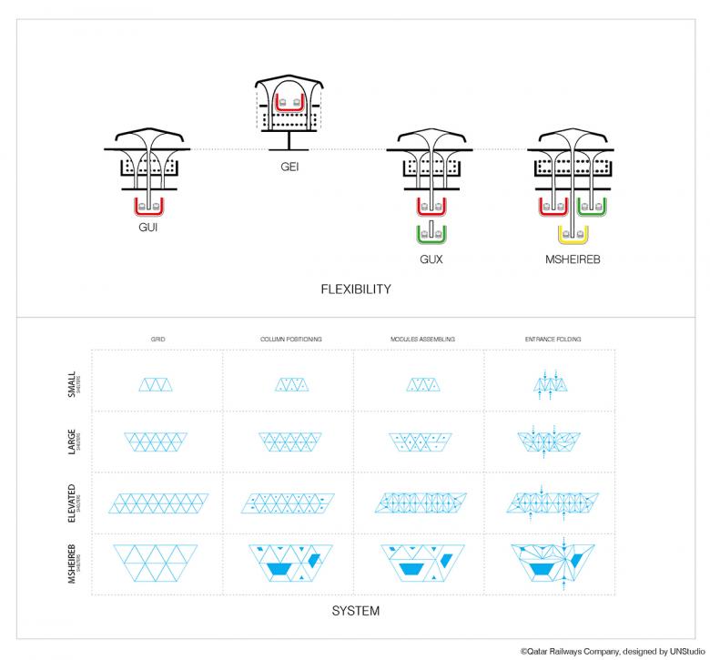 Ben van Berkel: “Through the production of a design manual and with the use of adaptive parametric design, it has been possible to create a design with many variants, yet one which maintains a coherent identity throughout all of the stations. In this way, we can combine local contextual differences within an overall identity and parametrically adapt physical factors such as wayfinding, daylight penetration, passenger flows, constructive elements etc. in a complex but extremely disciplined system.”