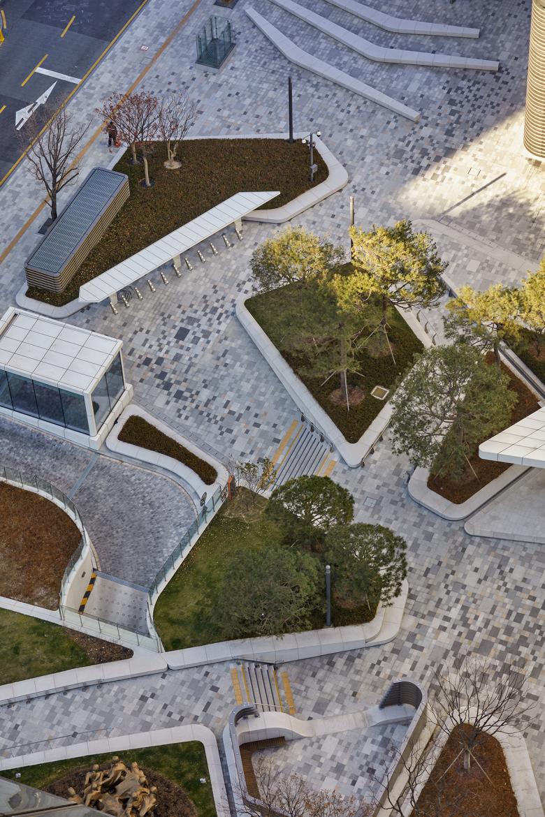 The fluid design of the plaza landscape encourages people to enter from all sides, while the multifunctional planters not only serve as a wayfinding element, but also provide customized seating areas. The different zones within the landscape can be used for a range of activities, from more private relaxation to larger scale gatherings.