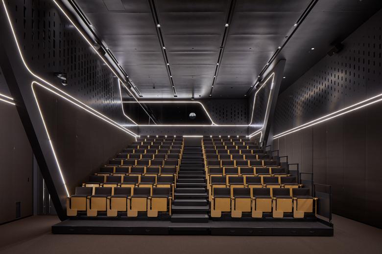 The wall cladding in the auditorium is designed to ensure good acoustics, while animated lighting and different settings enable the atmosphere to be adjusted as required for different events.