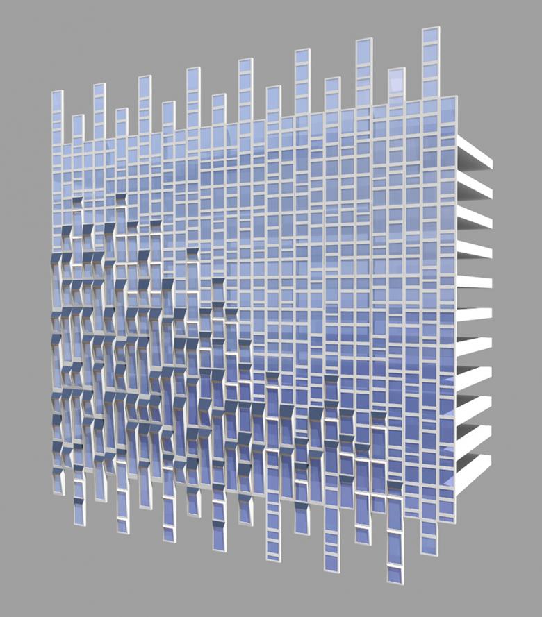 The basis for the facade expression is to achieve an effect of variety, irregularity and intricacy throughout. This expression is informed by the sun and orientation factors, as well as the programme: by varying the placement of the facade panels a variety of programme-related openings are created.