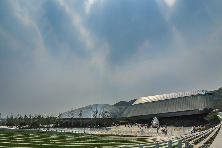 The 28,000-square-meter Theme Pavilion comprises the main Expo hall, a grand performance hall, a conference centre and a media centre. The architectural design gesture for the pavilion is borrowed from the shape of the Chinese rose - the city flower of Qingdao – and converted into the floor plan layout of the design.