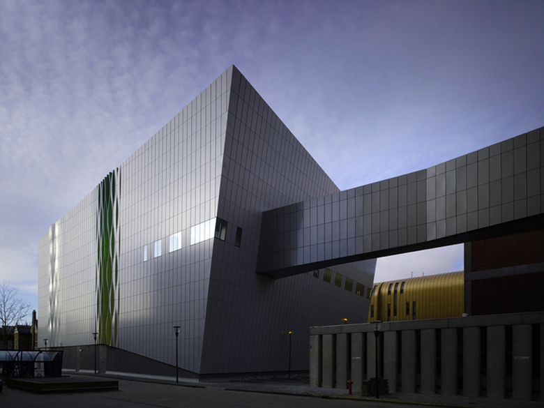 But what happens when a building is asked for that forbids this type of logic? The research laboratory in Groningen will be visited by very few people; on the inside it is a stark, technical environment, with only limited office space. The relationship between outside and inside is almost non-existent. Yet, the building is on a prominent location, passed-by daily by swarms of students and staff of the medical campus of Groningen University. And, at the same time, it needs to be more than a just skin wrapped around an unimaginative box, because the requirements, albeit technological in nature and never to be set eyes on by more than the handful of people authorized to work in this laboratory, are real and complex.