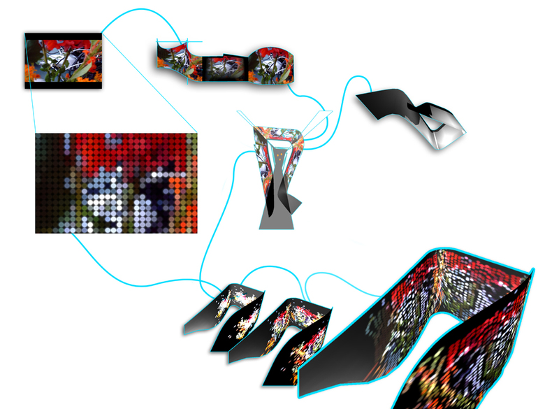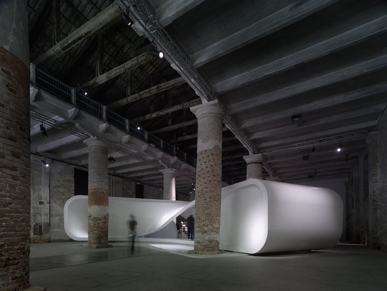 The UNStudio installation in the Arsenale explores the transformative potential of the material world. Just like clothes designers, architects offer alternate looks and identities, age and income-appropriate shells. These constructions consist of a miscellaneous package of endogenous and exogenous values; things and ideas that inherently belong to architecture and its traditions, and things and ideas that do not, but that nevertheless profoundly influence architecture. How to deal with this? Can architecture still have autonomy? According to UNStudio the lesson is to ‘switch it on, switch it off’… to find autonomy in brief moments of liberation.
