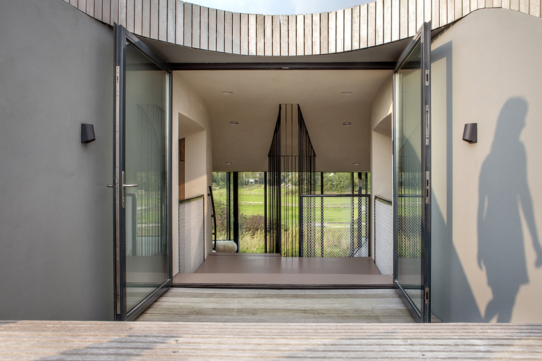 The W.I.N.D. House in the province of North-Holland incorporates both integrated sustainable solutions and home automation, whilst flexibility of spaces, the comprehensive assimilation of the surrounding landscape and a centrifugal circulation form the basis of the design.