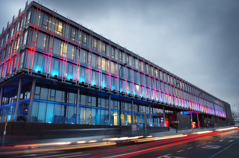 The new company headquarters of RTL-TVI, located at the corner of the Chaussée de Louvain and the Avenue Georgin
