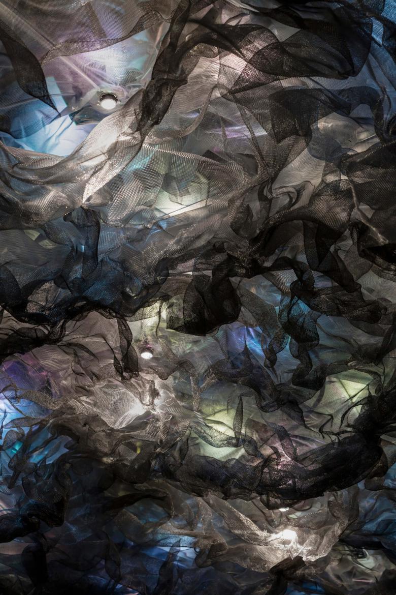 The Enigma project arose from the concept of generating an enigmatic yet active space where limits are blurred through reflections, luminous densities, chiaroscuros and color, so that the experience intensifies and focuses on the enjoyment of the high-end cuisine. The goal was to conceive a new perception of warmth, to achieve a result where material and light co-exist as one single communication. This was accomplished through a central element, the “cloud”. This cloud-shaped matrix of LEDs allowed the generation of densities and tridimensional light effects that accompany the diner and enhance their gastronomic experience.