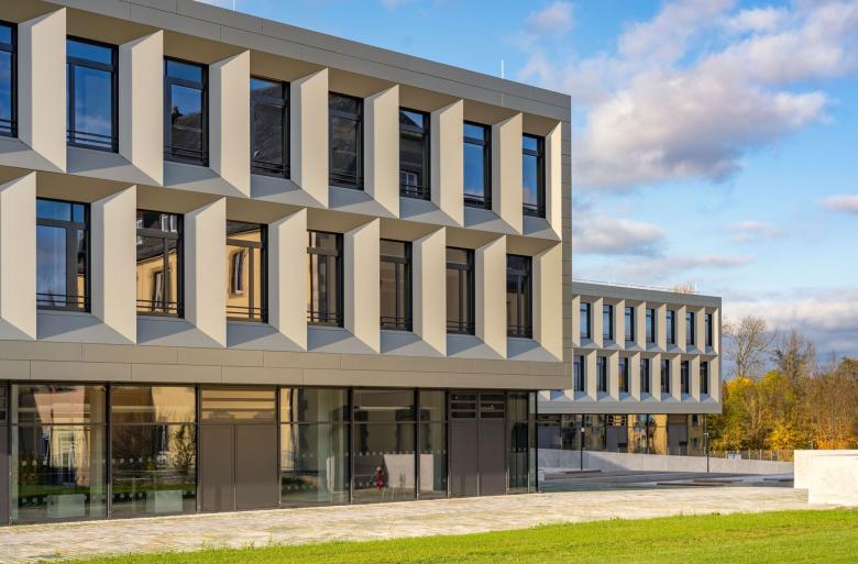 „Die schulräumliche Funktionalität ist insgesamt als optimal anzusehen. Eingang mit Foyerbereich, Pausenhalle mit Blickbezug zum Grün, unaufwändige Zuschaltbarkeit von Musik- und Mehrzweckraum entsprechen exakt der Vorgabe und dem Wunsch einer flexiblen schulischen Bespielbarkeit. Die Schularten sind in dem Gebäude ideal sowohl vertikal als auch horizontal je nach Bedarf veränderbar. Die Anordnung von Fachklassen und Funktionsräumen zueinander ist sehr gut gelöst. Leitung, Verwaltung, Lehrerzimmer und Bibliothek entsprechen bzgl. Auffindbarkeit und Zuordnung den schulischen Vorstellungen.“ (Auszug Protokoll der Preisgerichtssitzung)
