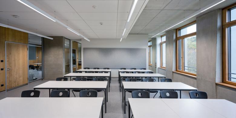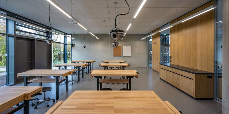 Das Lernhauskonzept bietet mehrere Möglichkeiten für zeitgemäße Lernkultur. Zentrum ist die jeweilige gemeinsame Mitte mit Möglichkeiten zur Begegnung und Austausch. Diese erweiterten Flächen der Klassenraumzone