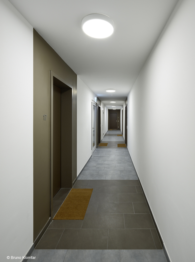 On the site itself, a high-quality pedestrian environment has been created. The Louise-Martini-Weg promenade forms a pedestrian, longitudinal passage through the new residential areas. The building units have been set back 5 metres from a property boundary in order to provide space for a second row of trees. Due to traffic calming measures implemented at Erdberger Lände and attractive ground floor uses, the promenade appears as an urban boulevard with direct access to the water.