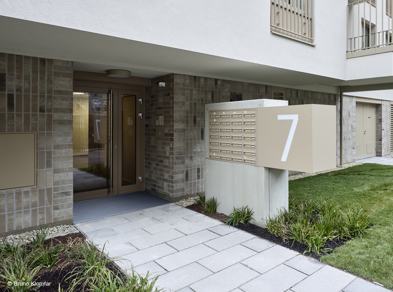 At Laendyard, Erdberger Lände 26 “South”, the residences are distributed throughout L-shaped and U-shaped structures which are situated along the promenade Louise-Martini-Weg and open up in a form of a park southwest. The entrances and adjoining spaces are oriented towards the promenade and ensure clear and effective house numbering, whereas the ground floor apartments with private gardens and children's playgrounds are oriented towards the open courtyards.