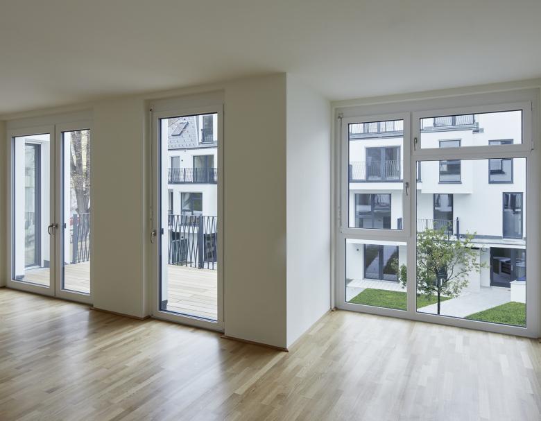 The redesigned Auhof ensemble now serves for compact living with modern demands and provides attractive open spaces in the form of private gardens, balconies or terraces. The ensemble predominantly consists of two and three room apartments, ranging from about 40 to some 138 square metres in size. Thanks to their functionally efficient layouts, the apartments enable optimum use of the living space. The beautiful, old stock of trees was largely preserved. On the ground floor to Auhofstraße, the underground car park offers sufficient parking spaces for residents as well as for the building’s commercial users.