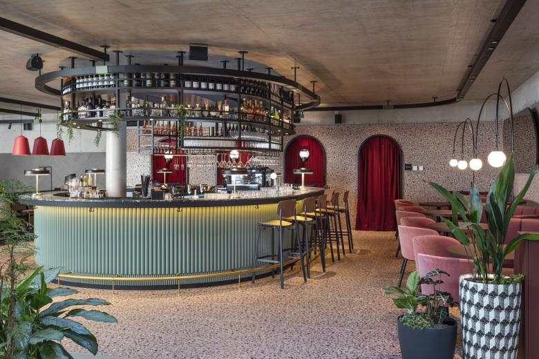 Vom Restaurant mit seinen 438 Quadratmetern und 197 Sitzplätzen, das ebenerdig mit dem Innenhof liegt, bieten große Fensterfronten freien Blick hinaus ins Grüne. Beim kulinarischen Angebot spielt lokal und saisonal erzeugtes Gemüse eine bedeutende Rolle. „Sowohl das Restaurant als auch die Bar sind so geplant, dass nicht nur Hotelgäste, sondern auch Einheimische sich hier wohlfühlen und ein Austausch entsteht“, betont Architekt Bernard.