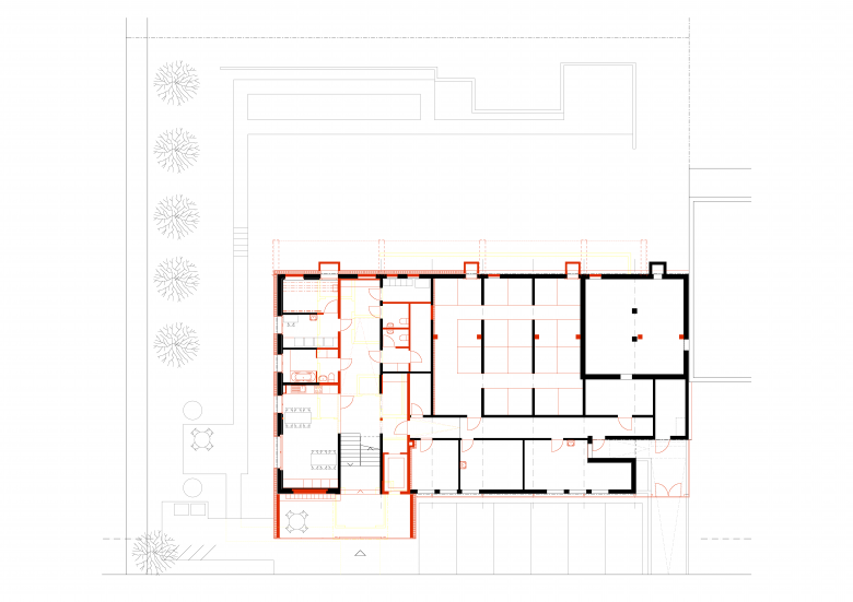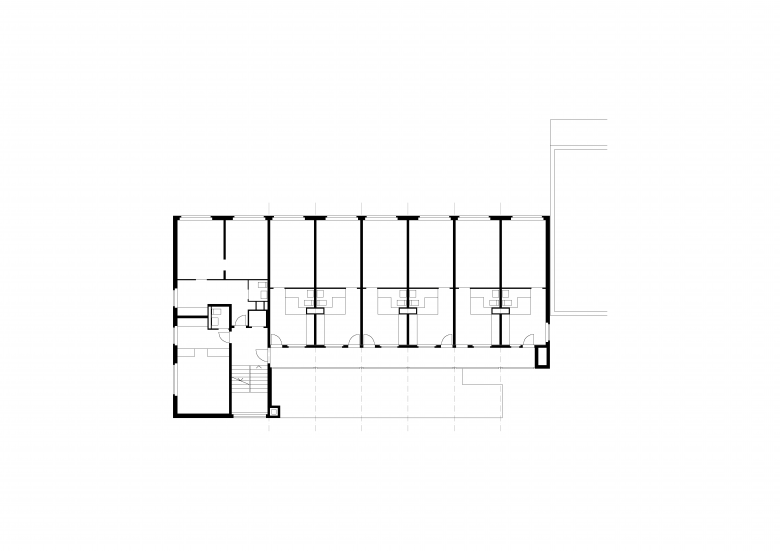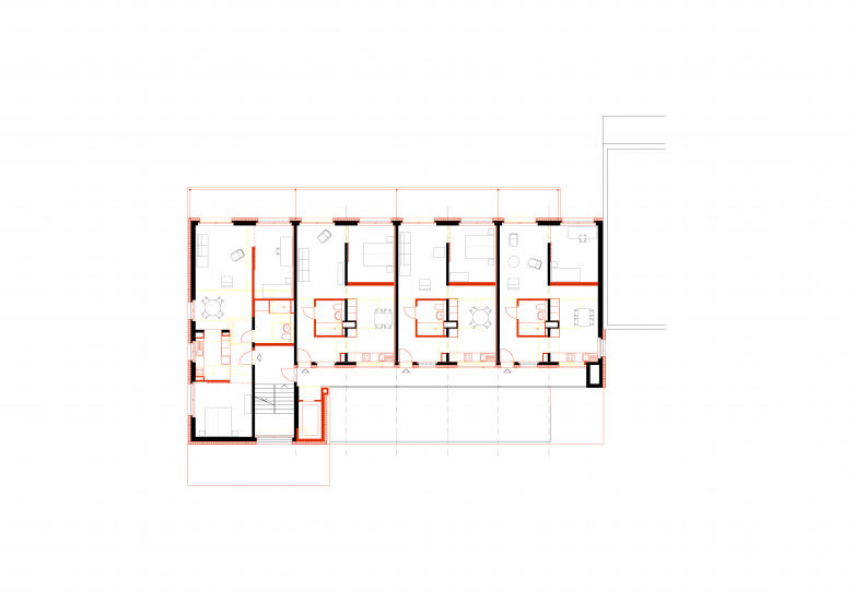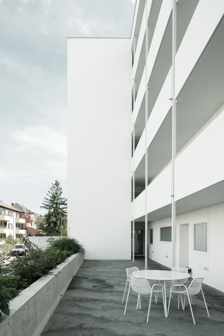 Gesamtsanierung der Alterssiedlung aus den siebziger Jahren mit Wohnungzusammenlegungen. Neue Gemeinschaftsbereiche. Balkone.