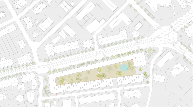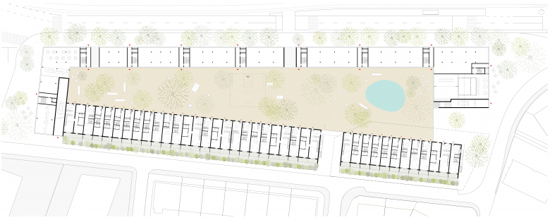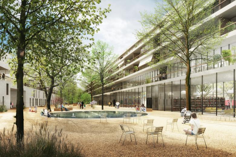 Neubau mit 100 Wohnungen, Ateliers, Büros, Restaurant, Bibliothek, Kindergarten, Läden, etc.