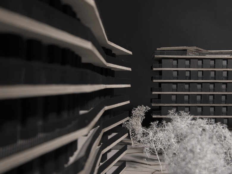 Situé dans le nouveau Quartier de Saint Mathieu, à Bernex dans le canton de Genève, deux bâtiments viennent réinventer le vivre ensemble villageois. Ils apportent aussi quelques éléments de réponses quant à une possible manière de construire / d'aménager les extensions d'une ville.