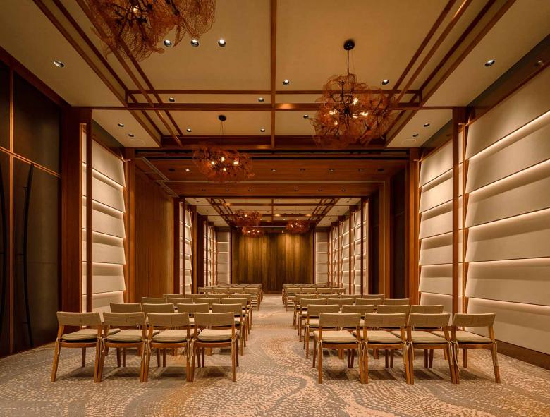 Schon der Name „Ta’aktana” bedeutet in der Sprache der Manggarai „grünes Land” und steht für die Geschichte der tropischen Landwirtschaft und Viehzucht. Durch die Verwendung bestimmter Materialien, Formen und einer bestimmten Raumplanung hat das Designteam die Essenz der Manggarai in verschiedene Motive verwandelt, die den Gästen als Erzählmittel dienen. Natursteinwände mit Sanskrit-Reliefs leiten durch die Lobby zur Aussichtsterrasse. In den Veranstaltungsräumen greifen Lederbespannungen und strukturiertes Holz gestalterisch auf den Caci-Tanz zurück. Auch die typische kreisförmige Struktur der Reisterrassen findet sich im Resort wieder – von den Dächern bis hin zu den Details beim Frühstück. Die Architektur wird hier selbst zum Erzähler: zurückhaltend und dennoch deutlich lesbar. Sieben auf Stelzen errichtete Villen ragen über das Meer hinaus. Von hier aus hat man freien Blick auf den Horizont und erlebt Labuan Bajo als „Stadt der tausend Sonnenuntergänge“. Die technische Ausstattung folgt dem differenzierten Raumkonzept: KNX kommt in öffentlichen Zonen zum Einsatz, während in privaten Bereichen klassische Steuerungen ausreichen. Die Schalter der Serie LS 990 in dunklem Aluminium und Matt Graphitschwarz fügen sich unaufdringlich, aber bewusst gewählt in die materialreiche Umgebung ein. Dieser Designansatz prägt Räume und Technologie gleichermaßen – unaufdringlich und doch wirkungsvoll.