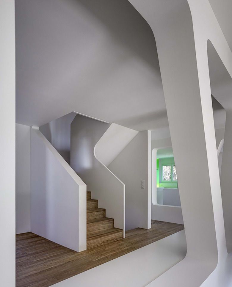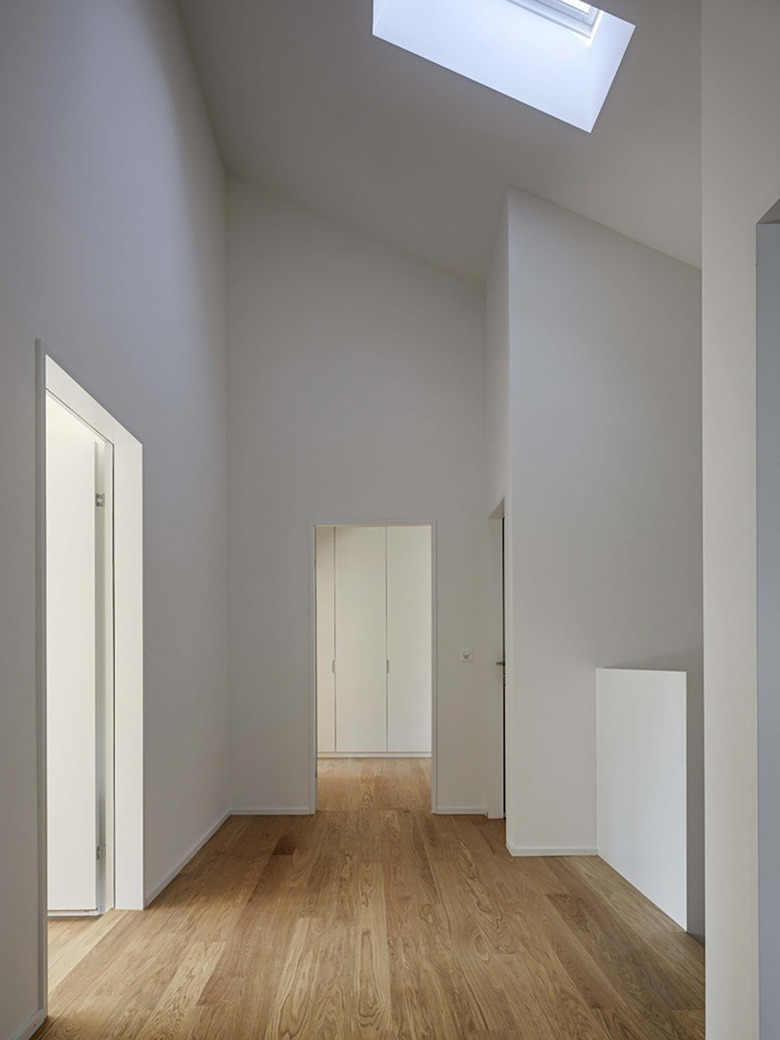 Die neuen Betonfachwerkträger verstärken statisch die alte Mauerwerkskonstruktion und gewährleisten die Erdbebensicherheit. Nachhaltiges Bauen stand im Fokus bei der Modernisierung der Gebäudehülle. Hochwertige Holzfenster wurden eingesetzt um den Energieverlust zu minimieren. Das Dach wurde mit Holzfaserdämmung saniert. Die Material- und Farbpalette des Hauses kombiniert den natürlichen Eichenfussboden, weisse Wände und zitronengrüne Akzente und erzeugt somit eine frische moderne Wohnatmosphäre.