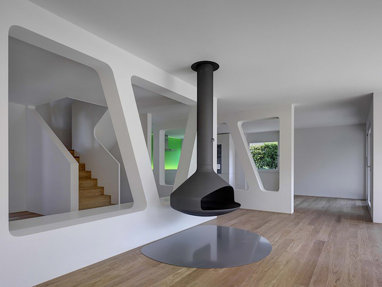 Der neue Grundriss entspricht einem modernen Lebensstil: eine offene Küche, ein freischwebender Kamin und grosse Glasschiebetüren, die den Innenraum mit dem Garten verbinden. Während sich die Wohnräume im Erdgeschoss befinden sind die Schlafräume im Obergeschoss verortet wo der Grundriss beibehalten wurde. Das Obergeschoss bietet für die Schlafbereiche viel Privatsphäre. Das grosse Schlafzimmer ist mit einer Ankleide ausgestattet, welche Schlafzimmer und das private Bad erschliessen. Das Untergeschoss wurde renoviert und zu einem multifunktionalen Gästeraum mit einem Weinkeller und Sauna umgestaltet. Die Treppe ist ein zentrales Entwurfselement, das die verschiedenen Bereiche des Hauses dynamisch miteinander verbindet.
