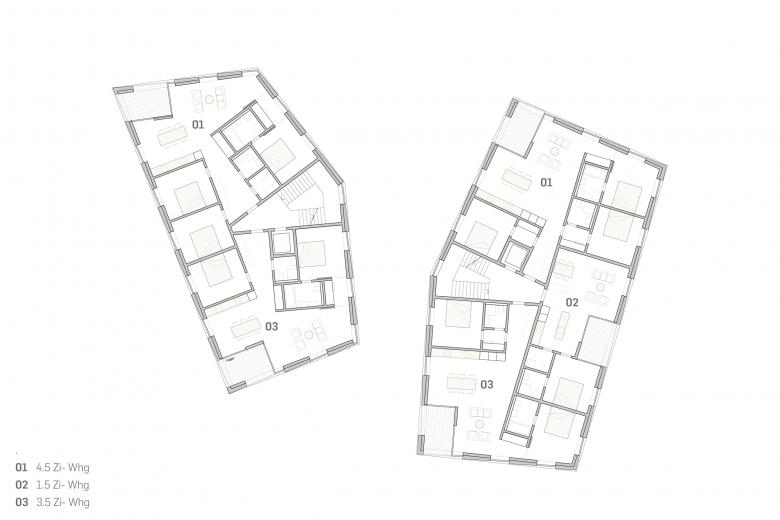 Es werden kompakte Gebäude angestrebt, deren Struktur flexible Anpassungen in Zukunft erlauben. Im Erdgeschoss, um dem Quartierplatz, sind die Geschäftsstelle Wettingen der Raiffeisenbank Lägern-Baregg und im Gebäude West ein kleines Café vorgesehen. In den Obergeschossen ist ein Wohnungsmix von hauptsächlich 3 ½- und 4 ½-Zimmer-Wohnungen im mittleren Segment geplant. Die Mehrheit der Wohnungen sind, 3-seitig über Eck orientiert. Es entstehen facettenreiche, zeitgemässe Wohnräume mit attraktivem Aussenbereich (Loggia) und nachhaltigem Flair. Die oberen Wohngeschosse sind als Hybridbauweise in Holz-Beton-Verbundsystem konzipiert. Als Vorzeigeprojekt im Bereich der Nachhaltigkeit soll die Überbauung nach den Vorgaben des Standard Nachhaltiges Bauen Schweiz (SNBS) gebaut und mindestens mit einem Zertifikat Gold abgeschlossen werden.