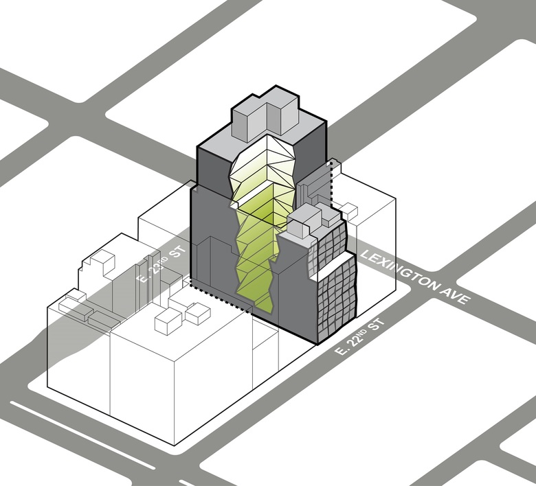 The L-shaped site posed an opportunity to be informed by the two neighborhoods while activating three street fronts. The concept emerges from this dualistic condition, referencing Cubist artwork, in which objects are viewed from a multitude of viewpoints rather than a single one to represent the subject in a greater context. As such, the North Tower conveys the meeting of the two neighborhoods, realized through two interlocking planes that come together at 23rd and Lexington to form a distinct, three-dimensional corner.