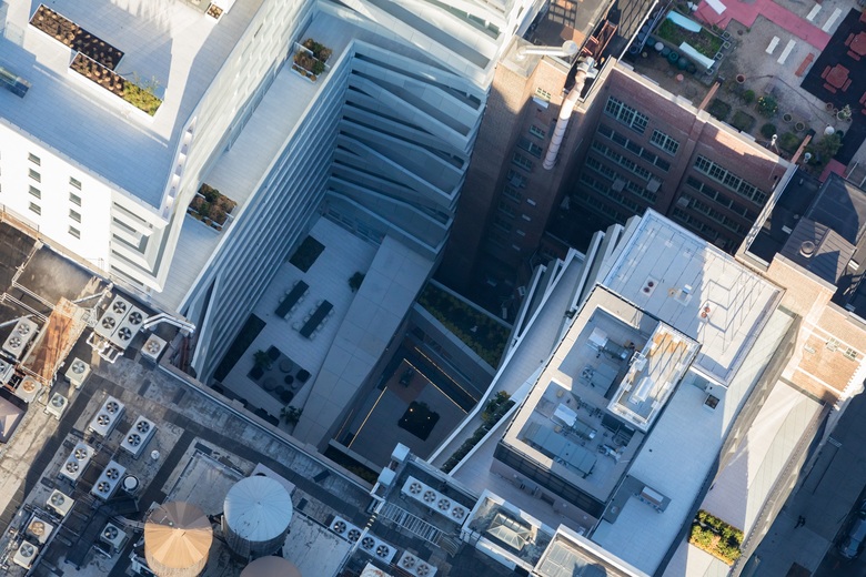 The valley is a calm oasis amidst the busyness of 23rd Street and Lexington and is centered around residential amenities and balconies, establishing an inside-outside living within the complex. The interior façade of the two towers facing the courtyard resonate with the three-dimensionality of the exterior façade—a ribbon of volumetric balconies provide a sculptural view up to the sky. Although similar in form, the valley’s materiality of light, perforated aluminum enhances daylight while giving the courtyard its own unique identity.